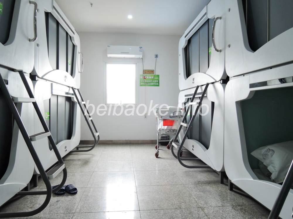 南陽駅前にあるカプセルホテルのチェーン店。部屋は8人ドミトリーでベッドはカプセル式だ。
