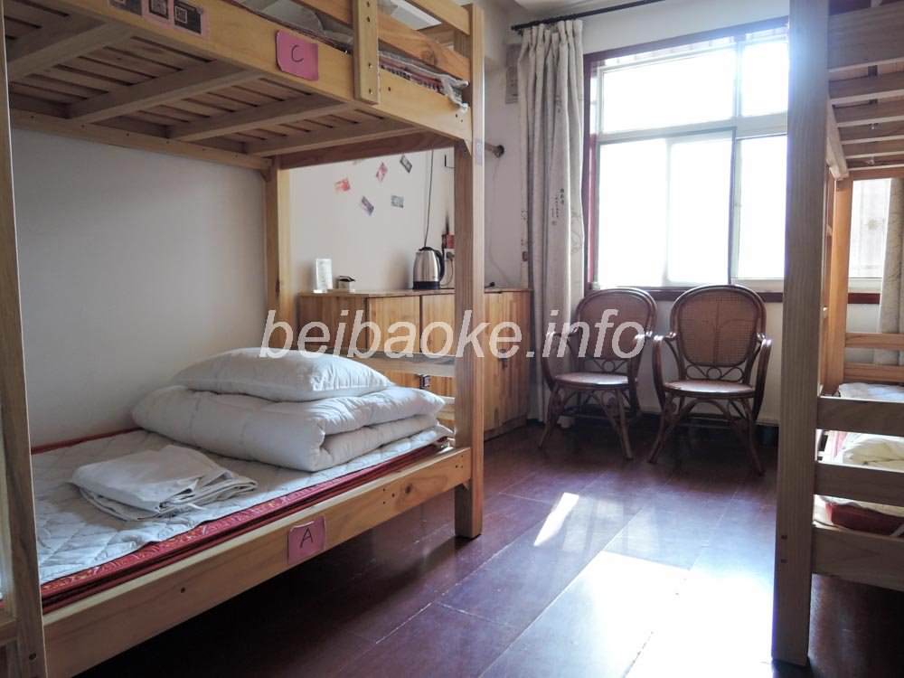 閑散期だったので客いない。トイレ・シャワー共同の8人ドミトリー(1泊45元/会員料金)を予約しておいたがシャワーのお湯が出ないということでトイレ・シャワー有りの8人ドミトリー(1泊50元/会員料金)に変更。