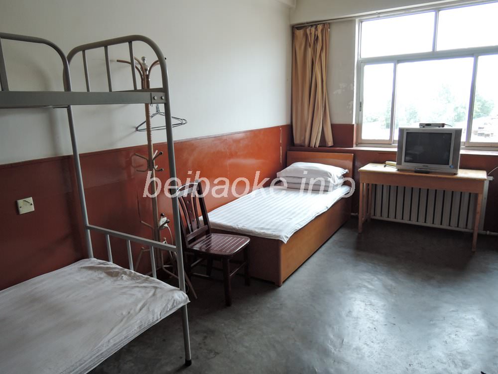 賓悦大酒店の敷地内に申し訳なさそうに建物があります。中国のユースホステルでは老舗の部類に入るので設備は古めで、ドミトリーのテレビは未だにブラウン管テレビ。